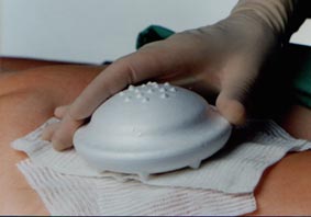 Das Kompressorium fest andrücken und gleichzeitig mit hautfreundlichem