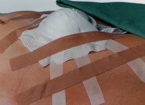 Pflaster (Leukosilk, Leukoflex) straff fixieren. Zum besseren Halt des